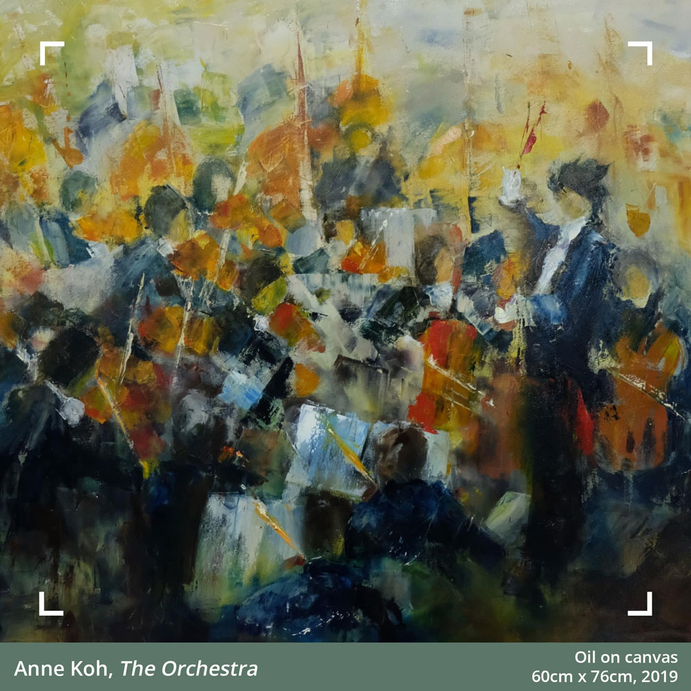 Immersing herself in the world of classical music, Anne Koh draws inspiration from the romance, intrigue and reflections from the captivating orchestral writing and divine melodic material. She paints in oils as if she herself is submerged in the magic of the sound and movement of an orchestra, overwhelmed by the emotional spectrum of the music.