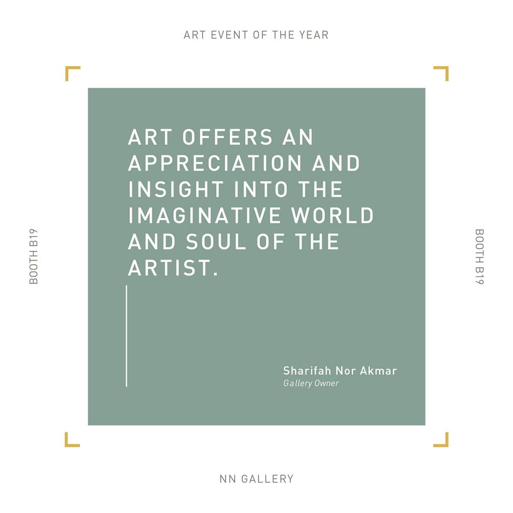 NN Gallery was set up as a private commercial art gallery to promote primarily Malaysian Art. Since its establishment in January 1996, the gallery has forged strong ties with its artists and base of clients to offer art consultancy and investment advice to private and institutional clients.